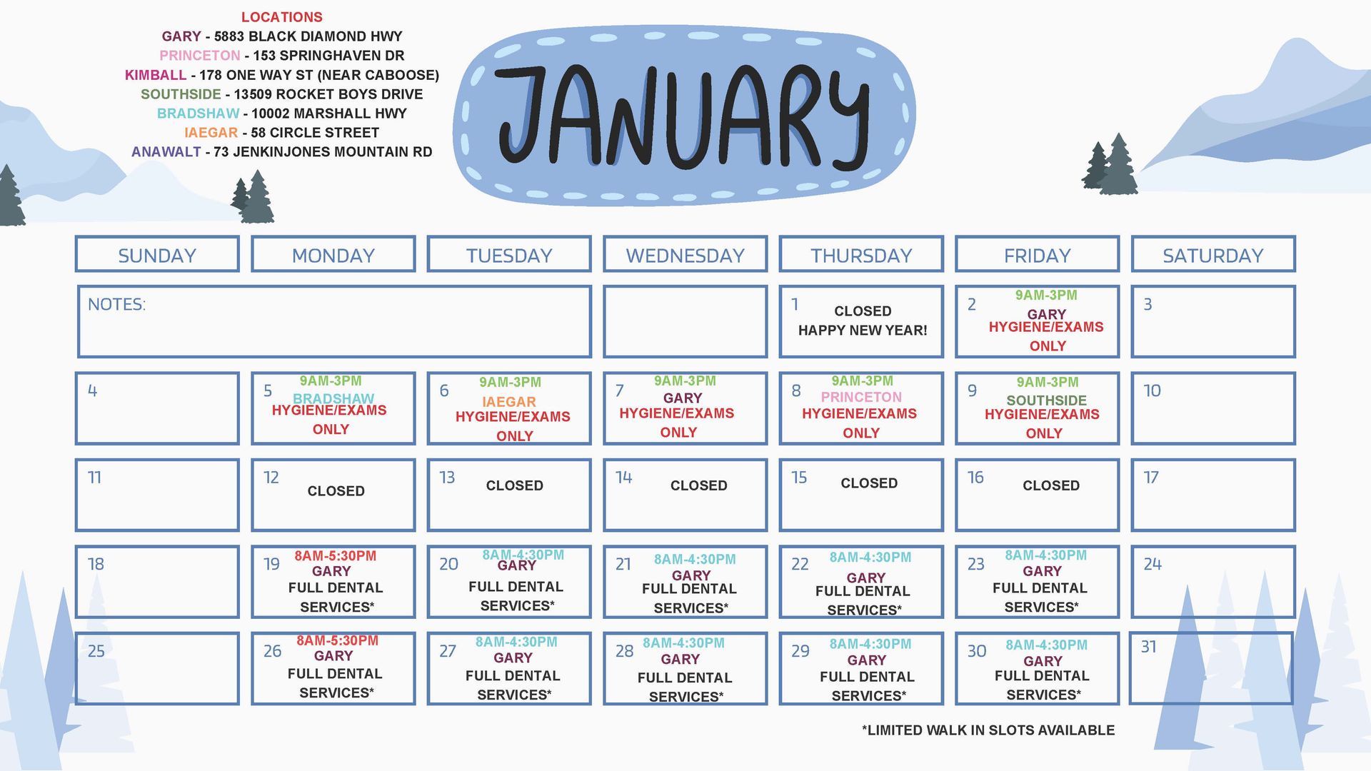 After nearly a year of providing mobile dental services to our remote sites in Bradshaw, Anawalt, Kimball, Iaegar, Southside, Welch, Princeton and Gary, our mobile dental services will close on 1/9 in Southside, as we transition back into our newly renovated dental clinic. We have limited space for walk-ins at our Gary clinic (5883 Black Diamond Hwy), starting January 19, 2026 and now taking appointments for mid-February!
